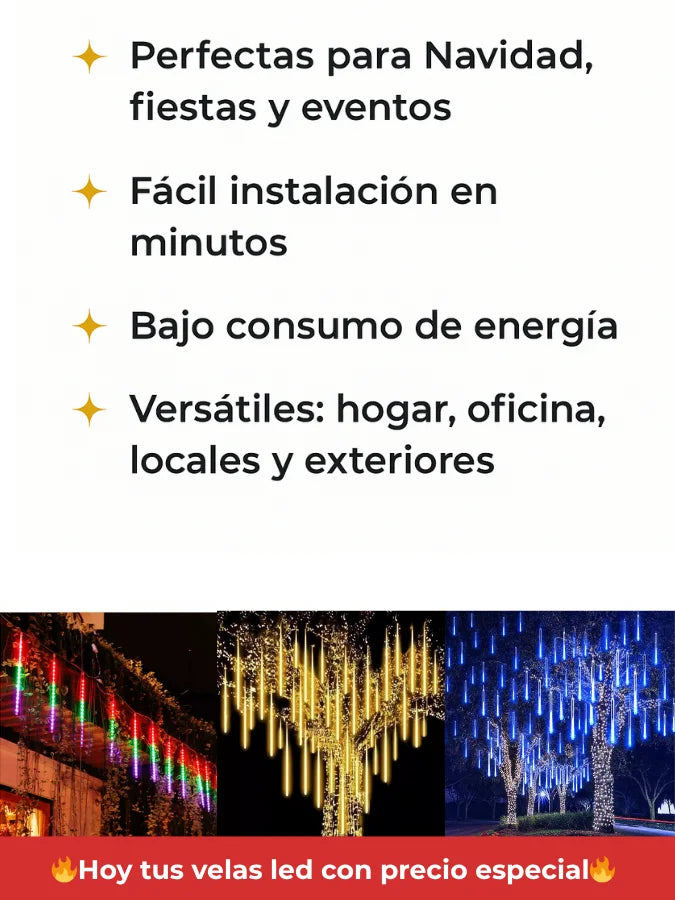 Con nuestras Luces LED tipo Meteorito, cada noche se convierte en un momento mágico lleno de brillo, color y encanto 💫