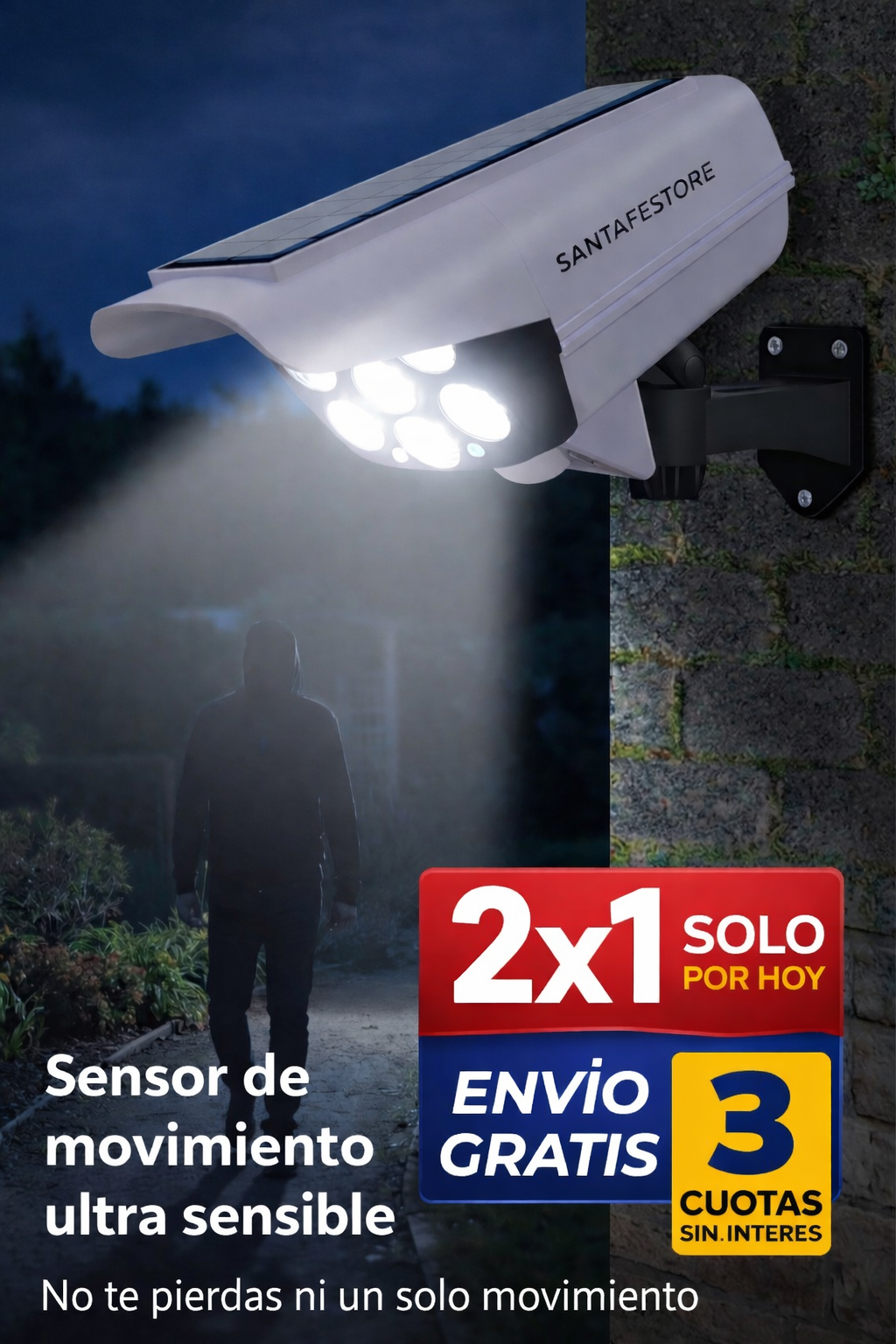 🚶 Sí, cuenta con sensor de movimiento que activa la luz cuando detecta presencia, aumentando el efecto disuasivo durante la noche 🌙🔦
