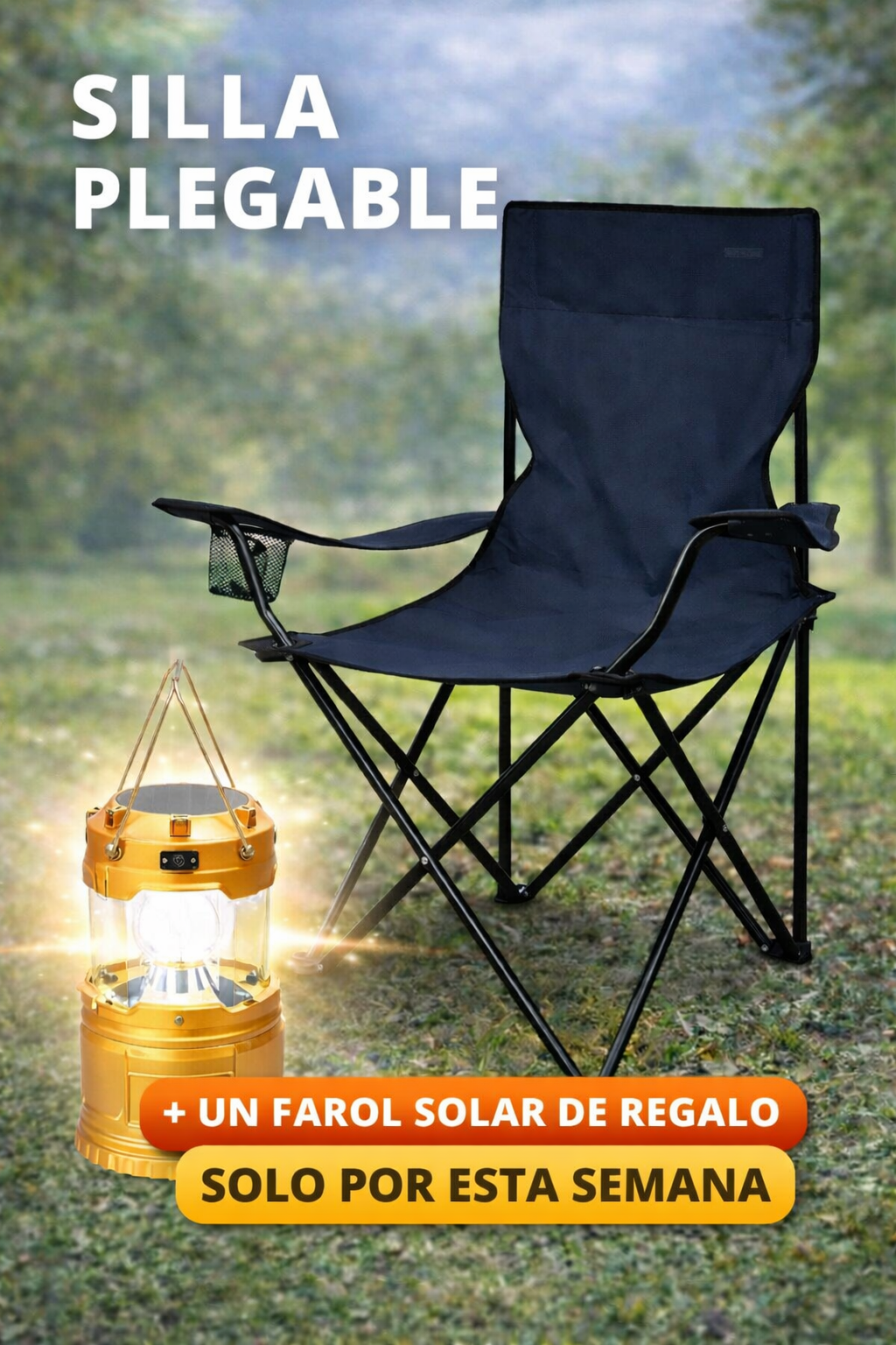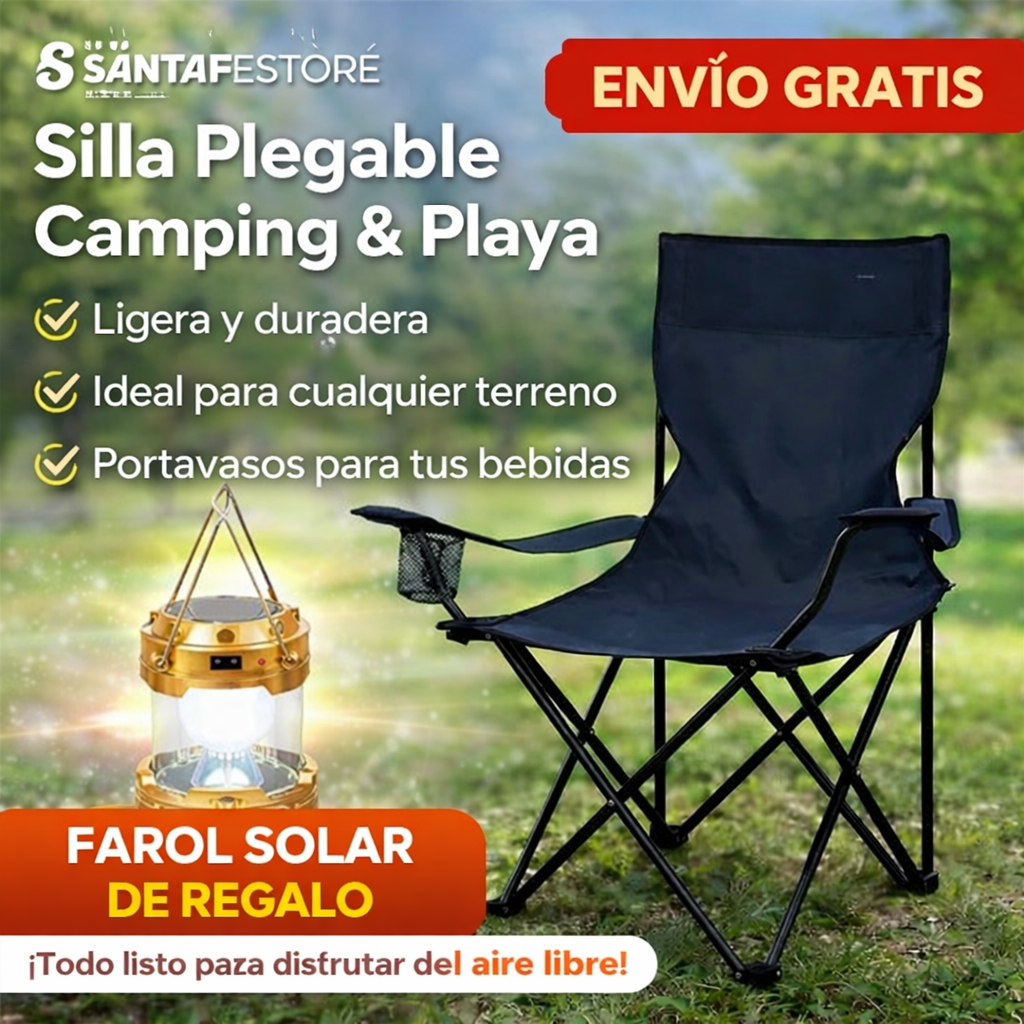 🎁 LLEVATE ESTA ESPECTACULAR SILLA PLEGABLE + UN FAROL SOLAR DE REGALO + ENVÍO GRATIS 🎁